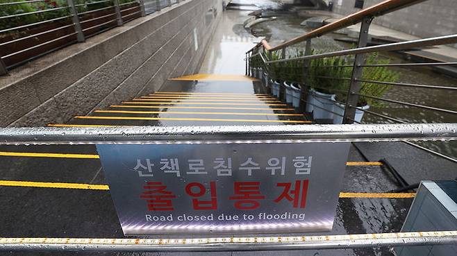 서울에 많은 비가 내리면서 청계천 산책로 출입이 통제되고 있습니다.