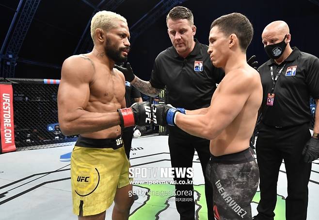 초반부터 치열했다. 1라운드 45초쯤 피게레도가 라이트 훅으로 베나비데즈 엉덩방아를 찧게 했다.