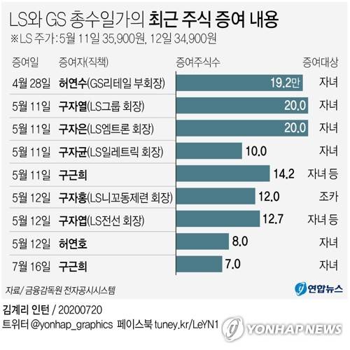 [그래픽] LS와 GS 총수일가의 최근 주식 증여 내용