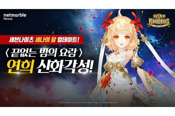 넷마블(대표 권영식, 이승원)은 모바일 RPG '세븐나이츠'의 '구 사황' 소속 영웅 '연희'의 신화 각성을 적용했다.