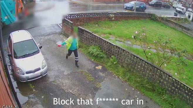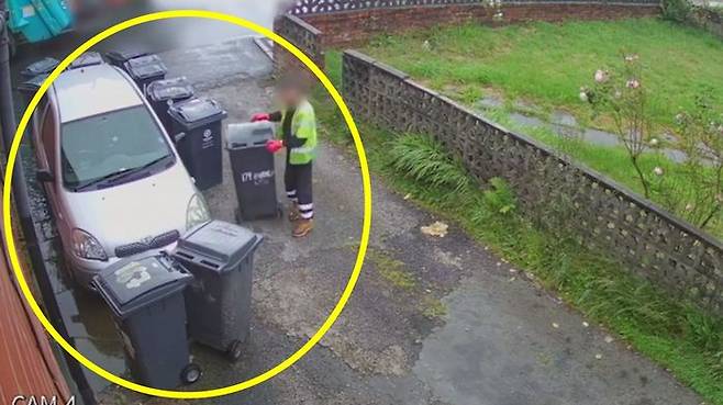 여성이 공개한 집 외부 CCTV에는 청소부들이 비워진 쓰레기통을 제자리가 아닌 부부의 자동차 주위로 가져가는 모습이 고스란히 담겼습니다.