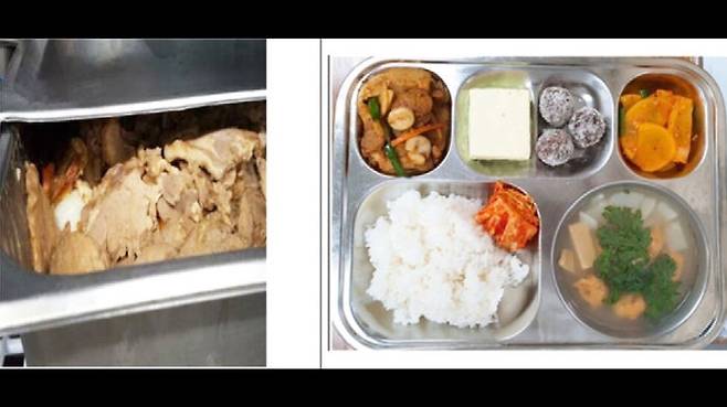 삼겹살 고추장 구이를 내놓으면서 전날 배식하고 남은 목살 스테이크를 섞어서 사용하는가 하면, 생과일로 나온 멜론을 사흘 뒤 과일 화채로 재활용했다고 주장했습니다.
