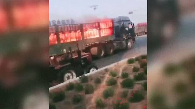 [영상] 불붙은 화물차 몰고 4km 질주..운전자의 기지