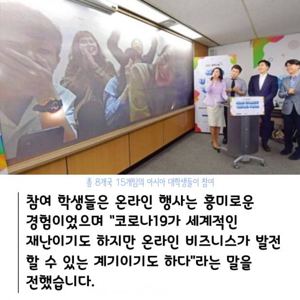 참여 학생들은 온라인 행사는 흥미로운 경험이었으며 “코로나19가 세계적인 재난이기도 하지만 온라인 비즈니스가 발전 할 수 있는 계기이기도 하다”라는 말을 전했습니다.