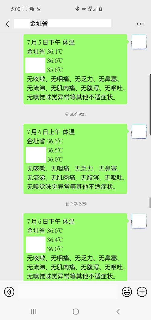 회사 숙소가 아파트이다 보니 가족과 함께 있을 수 있었습니다. 아파트 단지 내 산책 정도까지도 허용됐습니다. 하지만 아파트 단지 밖으로 나가는 것은 자유롭지 않았습니다. 아무리 다른 지역에서 강제격리를 했고, 코로나19 음성 판정 결과가 있다고 하더라도, 다른 도시에서 베이징으로 들어온 사람들은 또다시 일정 기간 '집중 관찰'을 해야 한다는 게 당시 베이징시의 방역 방침이었습니다. 아파트 주민위원회와 우리의 보건소 격인 지역 보건위원회는 저희 일행에게 1주일간 매일 두 차례씩 체온을 체크해 역시 앱에 올리도록 했습니다. 그 기간이 지날 때까지 아파트 출입증도 내주지 않았습니다.