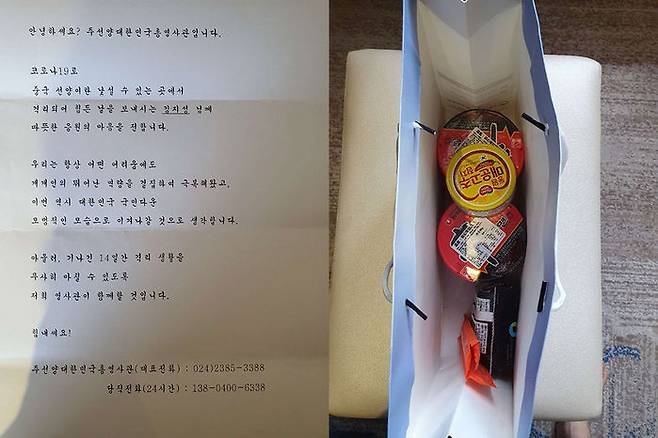 지금은 거류허가증 신청을 '무사히' 마치고, 특파원 업무를 시작했습니다. 그간 많은 도움이 있었습니다. 베이징 지국의 동료들이 어려움이 있을 때마다 도와줬고, 주선양 한국총영사관에서도 SNS를 통해 수시로 어려움이 없는지 확인했습니다. 격리 기간 현지 음식에 적응하지 못할까, 응원 메시지와 함께 컵라면 등을 보내주기도 했습니다.