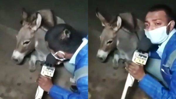 인도 기자가 길을 가던 '당나귀'를 붙잡고 다짜고짜 인터뷰를 진행해 화제입니다.