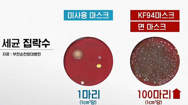 [신희봉/순천향대 부천병원 진단검사의학과 교수 : KF94마스크의 특성상 다른 마스크에 비해 상대적으로 통기성이 떨어져 균이 더 많이 검출되었을 가능성이 하나 있고요.]