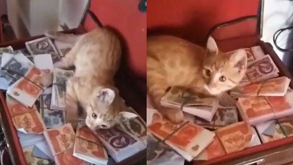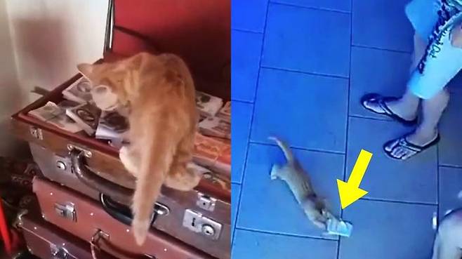 사실 고양이가 눈독 들이는 돈뭉치는 보돌라츠카야 씨가 가게 소품으로 놔둔 '가짜 돈'이었습니다. 보돌라츠카야 씨는 "과거를 테마로 한 술집을 운영하고 있어 인테리어 용도로 낡은 여행 가방 안에 가짜 지폐 다발을 가득 채워 뒀다"며 "고양이가 여행 가방 안에 자주 들어가기에 좁은 공간을 좋아하는 줄 알았는데, 돈을 좋아하는 거였다"고 혀를 내둘렀습니다.