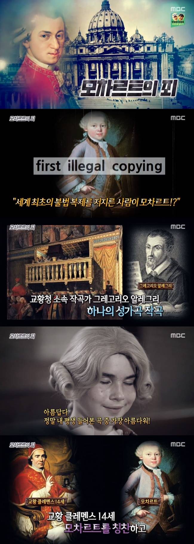 앞서 모차르트는 5살의 어린 나이부터 작곡을 시작한 천재 음악가로 알려졌다. 그러나 그가 14살이 되던 해 교황청의 금지사항을 어기는 죄를 저질렀다. 이는 바로 불법 복제였던 것. 이에 더해 세계 최초로 불법 복제를 저지른 이가 모차르트인 것으로 밝혀져 충격을 안겼다.