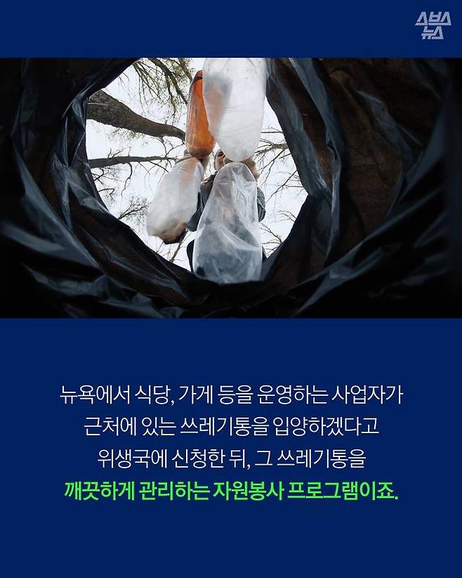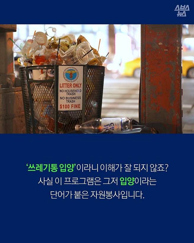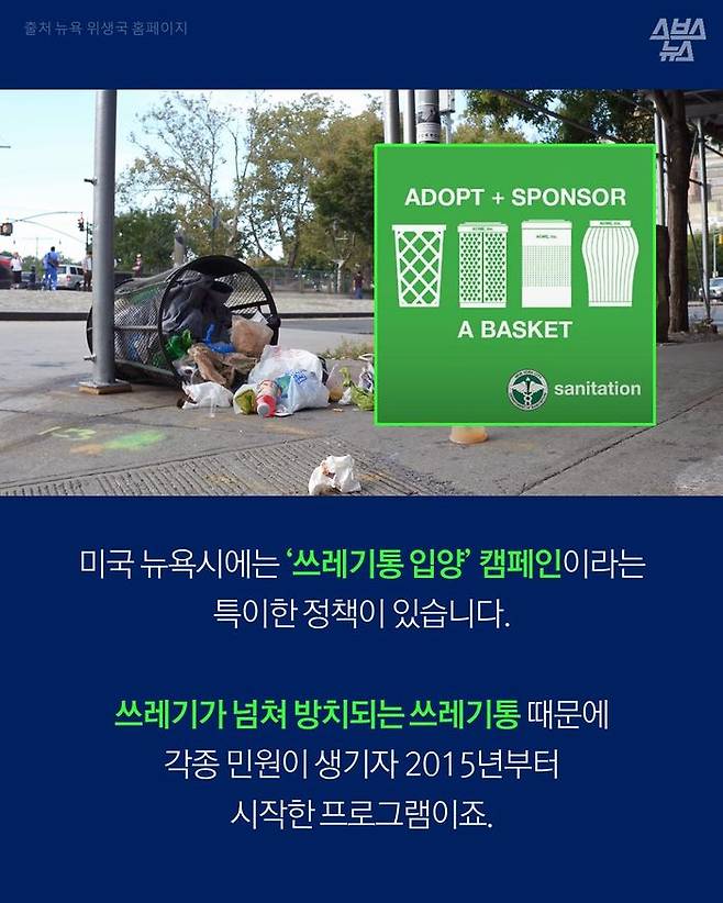 식당이나 가게 등을 운영하는 뉴욕의 사업자들이 근처의 쓰레기통을 입양해 지저분해지지 않도록 관리하는 일종의 자원봉사 프로그램입니다.