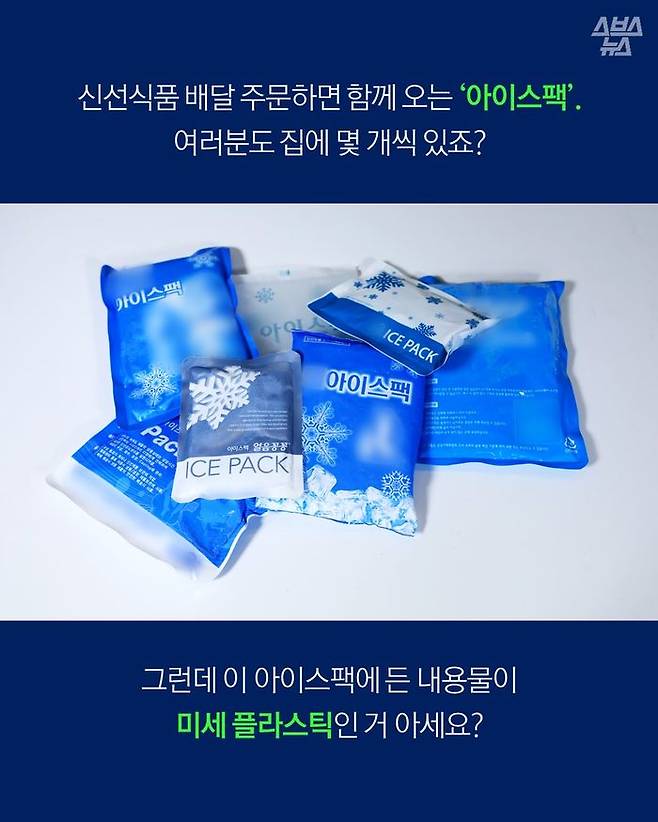 특히 신선식품, 냉장·냉동식품 배송 때 사용되는 '아이스팩'은 속 내용물로 플라스틱을 사용하고 있어 문제가 되고 있습니다.