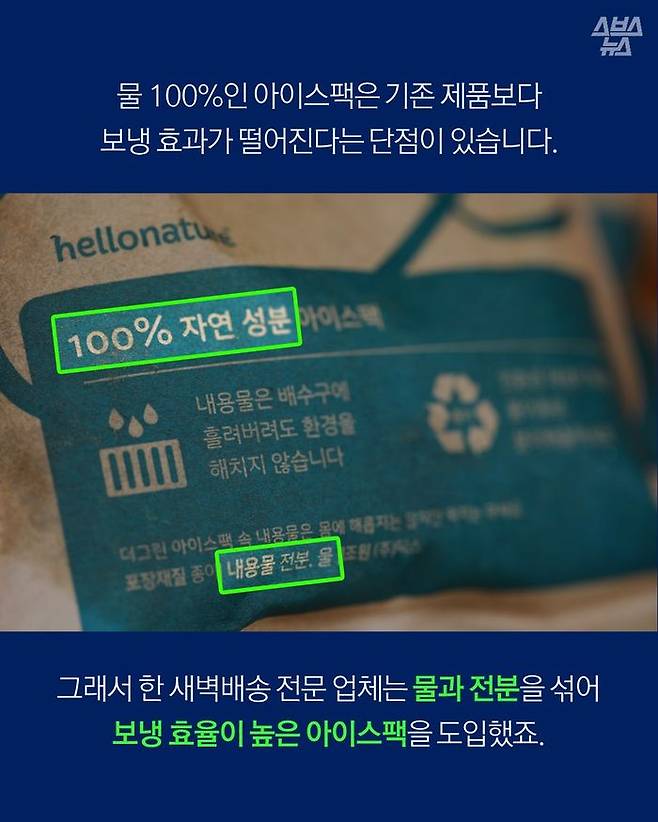 그래서 요즘 배송 업체들은 '친환경' 아이스팩을 만들기 위해 노력하고 있습니다.