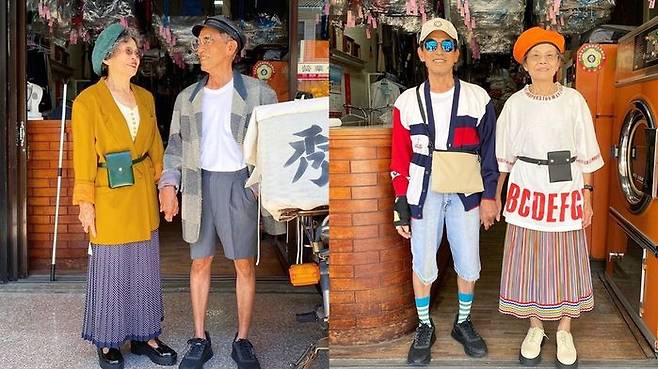 최근 온라인상에서 폭발적인 인기를 끈 사진을 보면, 부부는 자신들의 일터인 세탁소를 배경으로 자세를 취하고 있습니다. 셔츠 두 개를 겹쳐 입고 푸른 선글라스를 낀 할아버지, 체크무늬 치마에 베레모를 쓴 할머니 모두 남다른 패션 감각을 자랑합니다. 사뭇 진지한 표정을 지으며 '모델 아우라'를 뿜어내기도 합니다.