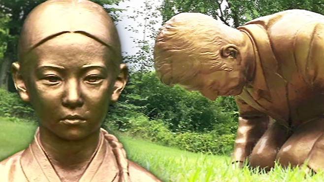 강원도 평창에 있는 한 민간 식물원에 위안부 소녀상과 소녀상을 향해 무릎 꿇고 사죄하는 남성의 조형물이 설치됐습니다. 일본 언론이 무릎 꿇은 남성이 아베 총리를 상징한다고 보도하면서 일본 정부가 강한 불쾌감을 나타냈습니다.
