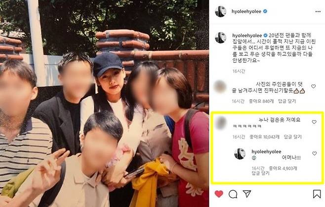 또 "사진 속 팬들이 댓글 남겨주시면 진짜 신기할 것 같다", "팬들 소환해서 똑같이 사진 찍어달라"는 누리꾼들의 반응도 있었는데요, 실제로 사진 속 한 팬이 등장해 "누나 검은 옷 저예요"라는 댓글을 남겨 눈길을 끌었습니다.