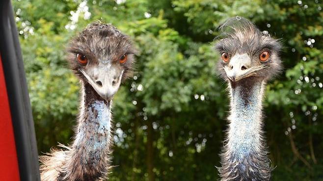 그런데 지난주 녀석들이 갑자기 식당에 들어오는 방법을 터득하면서 문제가 생겼습니다. 크리스 씨는 "에뮤들이 계단을 올라와서는 식당 문도 자유자재로 통과해 들어온다. 긴 다리로 식당 안을 돌아다니면서 손님들의 접시에 놓인 음식을 거침없이 먹어 치운다"며 혀를 내둘렀습니다.