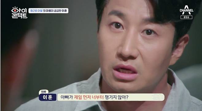 사춘기 아들을 울린 이훈의 진심. 29일 방송된 채널A ‘아이콘택트’에선 이훈 이정 부자가 출연해 눈 맞춤에 나섰다.