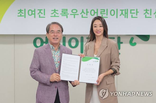(서울=연합뉴스) 아동옹호대표기관 초록우산어린이재단이 지난 29일 서울 중구 재단 대회의실에서 배우 최여진을 친선대사로 위촉했다.