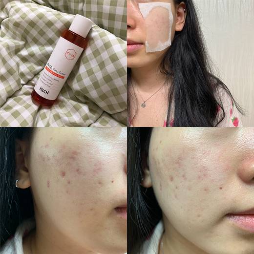각질 제거가 강점인 토너라고 해서 세안 후 제일 먼저 토너를 솜에 묻혀 얼굴을 닦아냈다. 트러블이 있는 부분에는 토너를 묻힌 솜을 10~15분 정도 올려서 토너 팩을 해줬다.