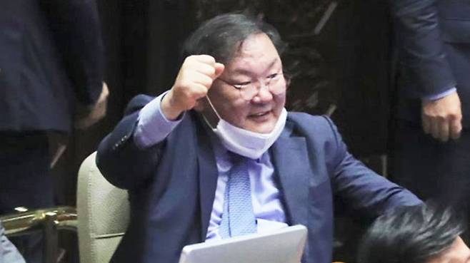 [박병석/국회의장 : 재석 187인 중 찬성 185인 기권 2인으로써 가결되었음을 선포합니다.]
