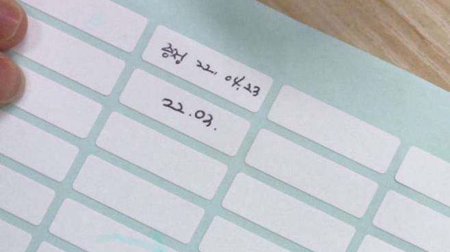 겉 포장에 사용 기한이 적혀 있지 않다 보니 포장을 뜯어 확인한 후 일일이 수기로 붙이고 다시 포장해두는 것입니다.