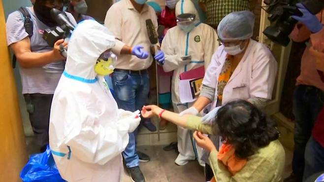 인도 뭄바이시 당국이 이달 초 빈민가 주민 7천 명을 대상으로 무작위 혈액검사를 한 결과, 주민 57%가 코로나19 항체를 가진 것으로 나타났습니다.