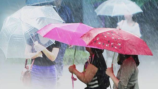 우산으로 비를 다 막기 어려울 정도이며, 계곡이나 하천물이 불어날 수 있어 유의해야 합니다.