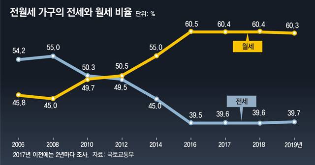 - 세입자, 4년간 집 걱정 덜지만월세 대세 되면 주거비는..
