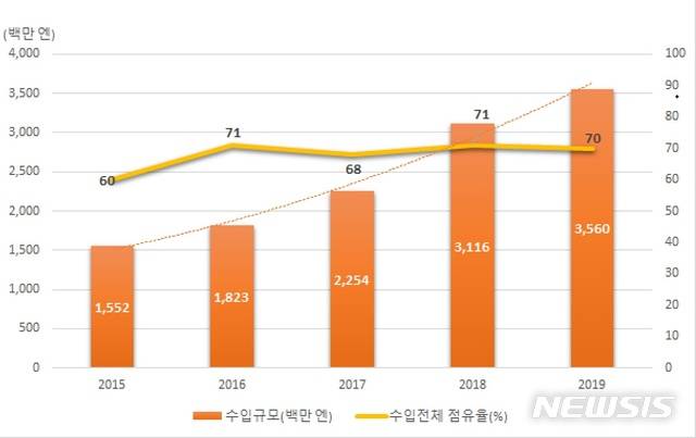지난해 일본 인스턴트 라면 품목의 총 수입 규모는 51억4000만엔으로 이중 한국이 35억6000만엔, 전체의 약 70%를 차지하고 있는데 향후 더욱 커질 수 있다는 전망이 나온다.