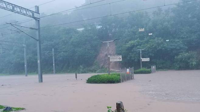 코레일은 선로에 토사가 유입된 구간에 긴급 복구 작업을 진행 중이며, 복구에 상당한 시간이 걸릴 것으로 예상돼 다른 교통 수단 이용을 부탁했습니다.