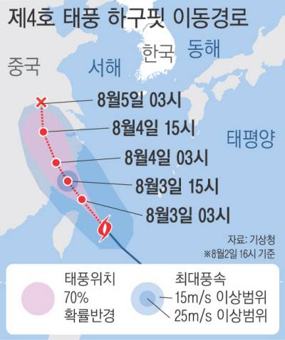 중부지방에는 5일까지 천둥·번개와 돌풍을 동반한 시간당 50~100㎜ 비가 올 것으로 전망된다. 하구핏은 4일 소멸할 것으로 전망되지만, 소멸하면서 방출되는 수증기의 양이 많을 경우 5일 이후 내리는 비의 강도가 더 강해지고 강수량도 늘어날 가능성이 있다.