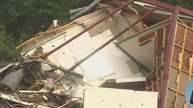 [강화자/사고 현장 인근 주민 : 두 채가 나란히 있던 건데 저기서 쓸어 덮어서 이리로 날아가서 아줌마는 돌아가시고 아저씨만 살았어요.]