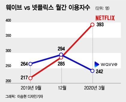 방송통신위원회의 2019년 방송시장 경쟁상황평가 보고서를 보면, 2018년 국내 유료방송(IPTV·케이블TV 등)의 전년 가입자매출 기준 월평균 요금은 1만 532원이다. 넷플릭스의 국내 이용자수는 지난해 12월만 해도 285만 명으로 국내 OTT의 웨이브(wavve)의 294만 명 보다 적었다. 하지만 올 들어 가입자 수가 역전했고, 지난달에는 넷플릭스(467만명)와 웨이브(272만명)의 격차가 200만명 가깝게 벌어졌다. 넷플릭스가 한국 시장을 적극 공략하면서 토종 OTT와 유료방송 사업자의 타격이 현실화한 셈이다.