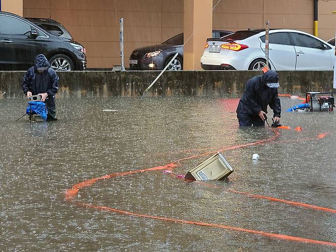 [현장] '하늘도 야속하지' 퍼내도 퍼내도 끝없는 빗물