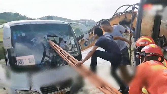 자신도 위험할 수 있는 상황에서 피할 법도 하지만 굴착기로 직접 승객들을 구하는 데 앞장선 장중난 씨와 소방대원들 덕분에 이날 어린이와 노인들을 포함해서 모두 14명 사람들이 무사할 수 있었습니다.