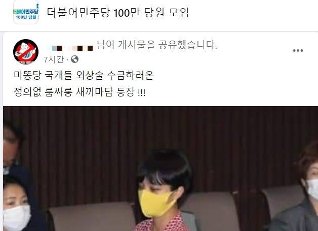 5일 더불어민주당 100만 당원 모임에서 한 네티즌은 류호정 의원을 "룸싸롱 새끼마담"이라고 표현했다.