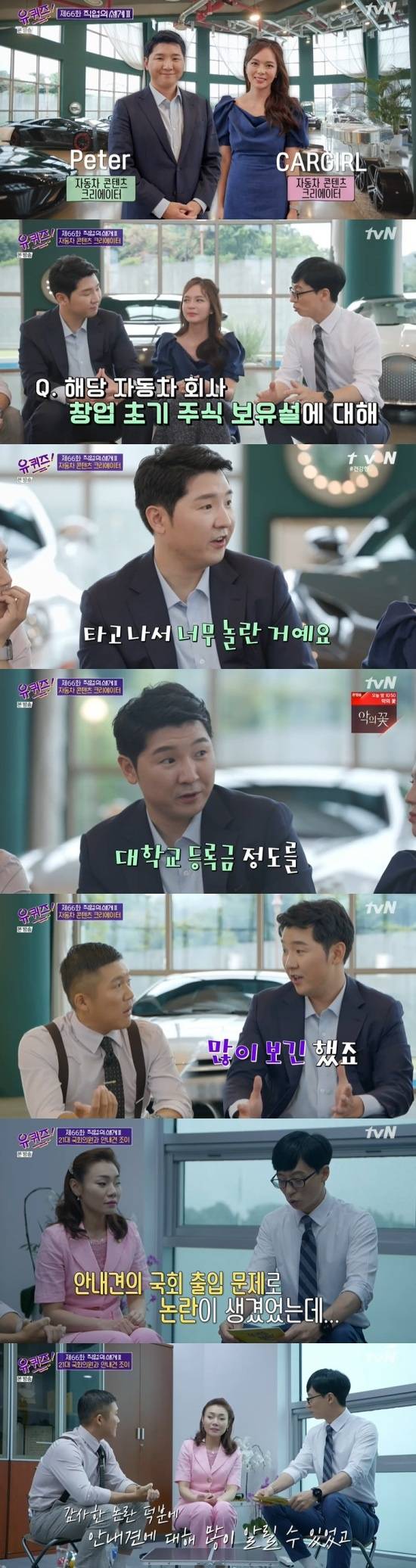 [엑스포츠뉴스 이이진 기자] 저널리스트 남형도, 자동차 콘텐츠 크리에이터 피터와 카걸 부부, 국회의원 김예지, 펍지 대표이사 김창한, 특수청소전문가가 자신의 직업에 대해 이야기했다.