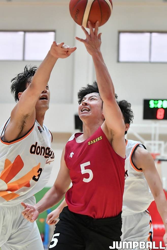 [점프볼=이천/홍기웅 기자] 6일 경기 이천 LG 챔피언스 파크 연습체육관에서 열린 LG-동국대의 연습경기. LG 김시래가 수비 사이에서 손끝으로 골밑슛을 시도하고 있다.