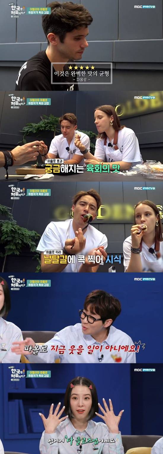 파올로는 직장 동료들에게 육회 김밥과 분식을 소개했다. 패널들은 파올로의 직장 동료 스티븐을 보고 "잘생겼다"고 입을 모았다. 딘딘은 "제작진들도 스티븐이 잘생겨서 계속 찍고 있다. 파올로 지금 웃을 일이 아니다"고 지적했다. 아이린은 "심지어 다 클로즈업이다"고 전했다.