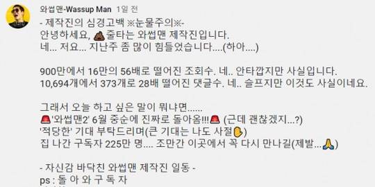 "'성공했다'라는 건 과거 얘기가 된 것 같아요. 이미 그걸 넘어서는 채널이 많이 나왔으니까요. 저희는 '유물'이 됐음을 인정하고 구독자와 함께 놀 수 있는 유적지가 되고 싶어요. 그 앞에 벤치도, 매점도 만들어 '여기가 와썹맨이래' 하고 사진 찍으러 와 놀 수 있게끔요. 다양한 콘텐츠를 '버라이어티하게' 보여주고 싶은 게 목표죠."