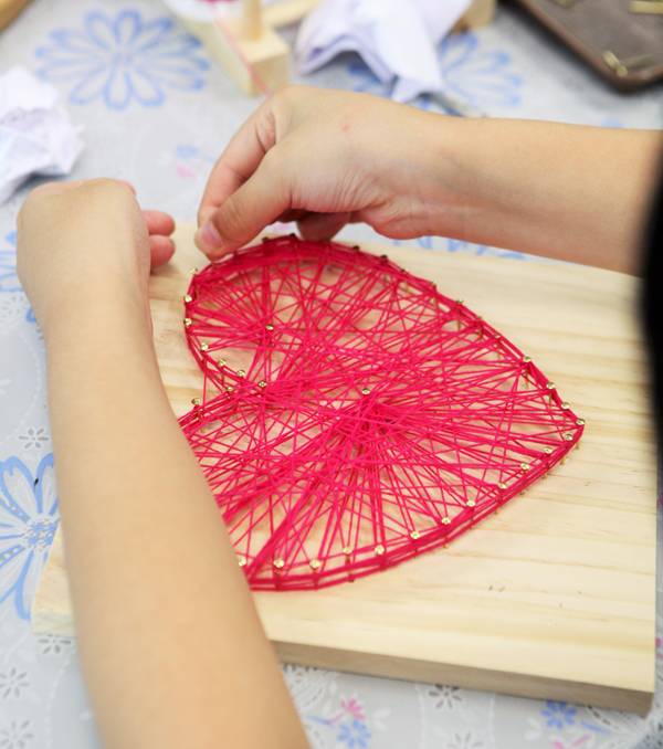 체험프로그램은 어린 자녀들이 있는 가정이 함께 즐기며 서로 협동하고 즐거움도 쌓아 갈 수 있는 것들로 섬세하게 준비됐다. 첫 번째는 스트링 아트. 나무판에 밑그림을 그리거나 붙인 후 외곽선을 따라 못을 박아 세운 후, 실을 촘촘히 감아 면을 채우면 근사한 작품이 하나 완성된다. 요령이 간단해서 시간 내 마치지 못하면 집으로 가져가서 완성할 수 있다. 다음 체험을 시작하기 전에는 즉석에서 얼음을 갈아, 근처 농장에서 딴 블루베리와 양구 사과로 만든 잼을 넣은 건강한 빙수로 더위를 식혔다.
