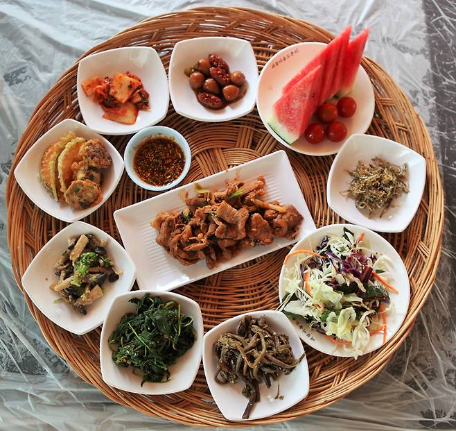 다음날 체험프로그램의 테마는 요리! 양구 사과 주스로 만든 시원한 사과물김치와 김 대신 향이 짙은 곰취로 말아 낸 곰취김밥은 모두를 셰프로 만들어 주었다. 집으로 돌아가 가족이 함께 먹으면 양구의 추억이 더욱 새록새록 한 선물이기도 했다. 여행의 마무리를 장식한 것은 대나무 채반을 가득 채운 10첩 반상, 마을 밥상이다. 부녀회 어머니들이 정성껏 무쳐낸 신선한 나물과 전, 돼지고기볶음, 시원한 수박까지, 모든 것이 좋았다.