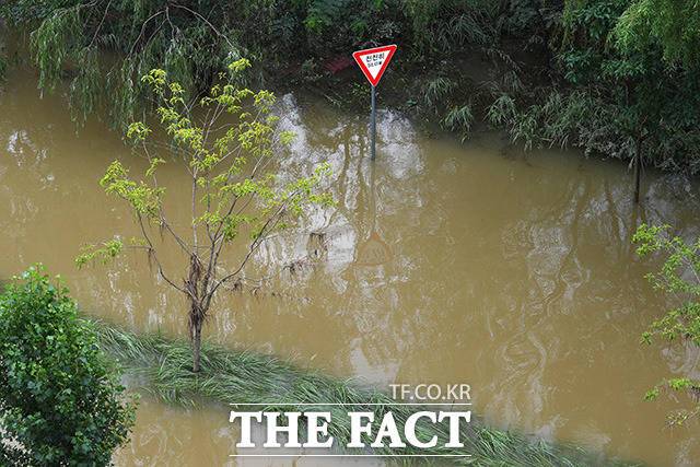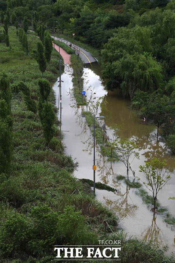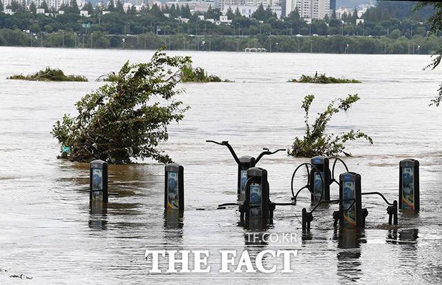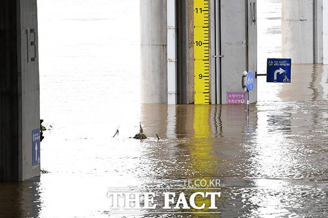[TF사진관] '불어난 한강'..열흘째 통제중인 잠수교와 한강공원