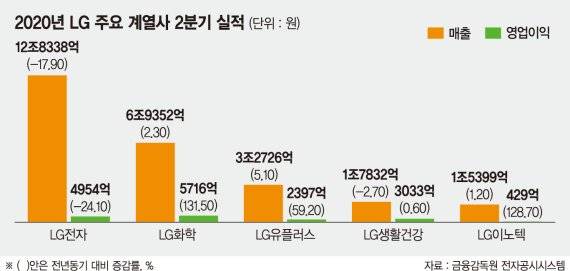 전자, 화학, 유플러스 등 주요 LG 상장사들이 올 2·4분기 잇달아 어닝 서프라이즈를 기록하며 ㈜LG의 실적을 견인한 것이다.