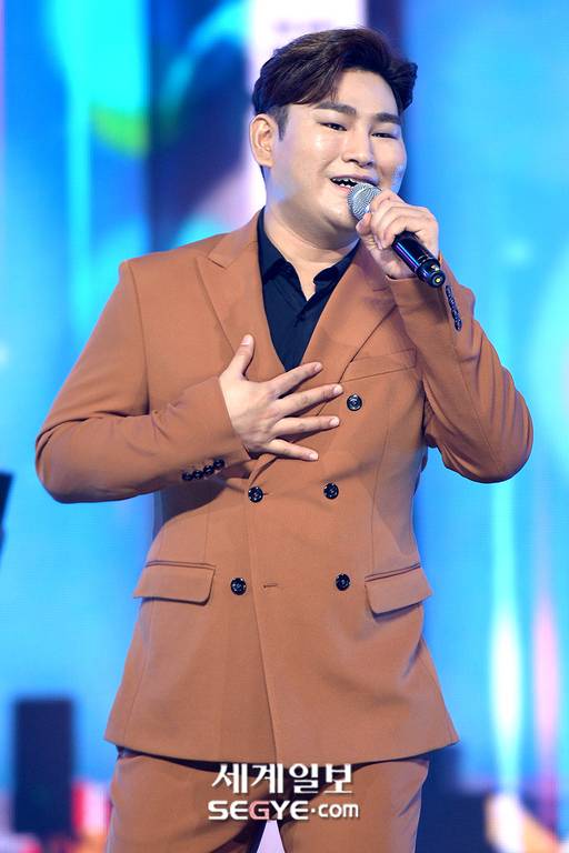 가수 강태관이 12일 오후 경기도 고양 일산동구 MBC 드림센터에서 진행된 MBC MUSIC '쇼 챔피언'의 현장공개에 참석해 열띤 공연을 하고 있다.