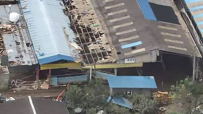 불어난 물을 피해 소들이 올라갔던 구례의 축사 지붕은 곳곳이 폭삭 내려앉았습니다.