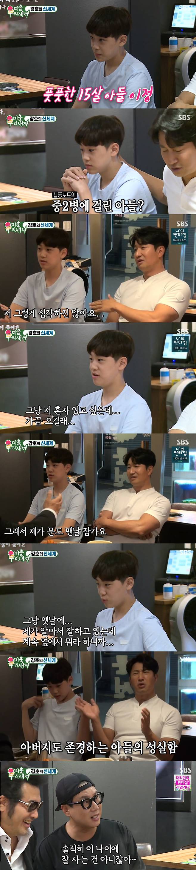 이훈은 "아들을 존경하는 부분도 있다. 운동이다. 4학년 부터 하루도 쉬지 않고 농구를 매일 한다는 건 쉽지 않다. 아침에 매일 일찍 일어난다. 누가 시키는게 아니다. 너무 기특했다"면서도 "중2병에 걸려서..."라고 해 웃음을 안겼다.