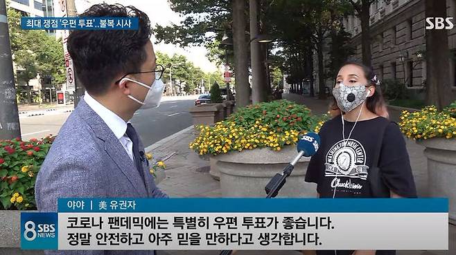 며칠 전 8뉴스 제작을 위해 길거리 지나가는 미국 유권자들을 상대로 우편 투표에 대해서 물어봤습니다. 그런데 단 한 명도 부정적인 의견을 말하는 사람이 없어서 놀랐습니다. "팬데믹에는 안전하고 믿을 만하다", "사람 접촉하기 무서우니 완벽한 선택이다"는 반응이 돌아왔습니다. 부정적인 반응이 나와도 뉴스에 그대로 쓰려고 했는데, 8명을 인터뷰해도 한 명도 그런 말을 안 해서 결국 포기했습니다. 美 CBS 방송에서 여론 조사를 해보니 전체 등록 유권자 가운데 45%가 우편 투표를 선택할 거라고 답했다고 합니다.