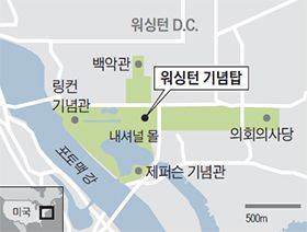 계획도시 워싱턴은 거대한 기념공원 '내셔널 몰(National Mall)'을 중심으로 건설됐다. 내셔널 몰의 한가운데를 장식하고 있는 건 높이 솟은 '워싱턴 기념탑(Washington Monument)'이다. 이집트의 오벨리스크를 닮은 기념탑의 규모는 170미터로 압도적이다. 이집트의 상징인 기자의 피라미드보다 20미터 이상 높다. 더 인상적인 건 기념탑을 둘러싸고 펄럭이는 50개의 성조기다. 하나하나가 미국을 구성하는 50개의 주(州)를 뜻한다. 역시 특이하다. 미국은 워싱턴을 중심으로 돌아가고 있다는 것을, 50개의 주는 워싱턴을 중심으로 뭉친다는 것을 얘기하는 듯하다.